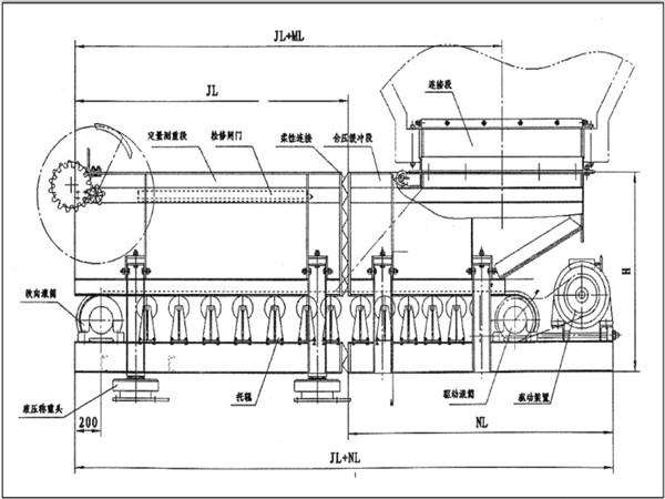 稱重計量給料機設備分為倉壓緩沖段及定量測重段兩段,而兩端中間采用柔性件進行連接。稱重計量給料機的倉壓緩沖段和地基固定在一起,以此來承受倉壓。而定量測重段的豎直方向一直處于浮動狀態(tài),全部重量都壓在四個液壓稱重頭上,以此來達到恒定給料的目的。稱重計量給料機具有性能平穩(wěn)可靠、噪音小、經久耐用等特點。