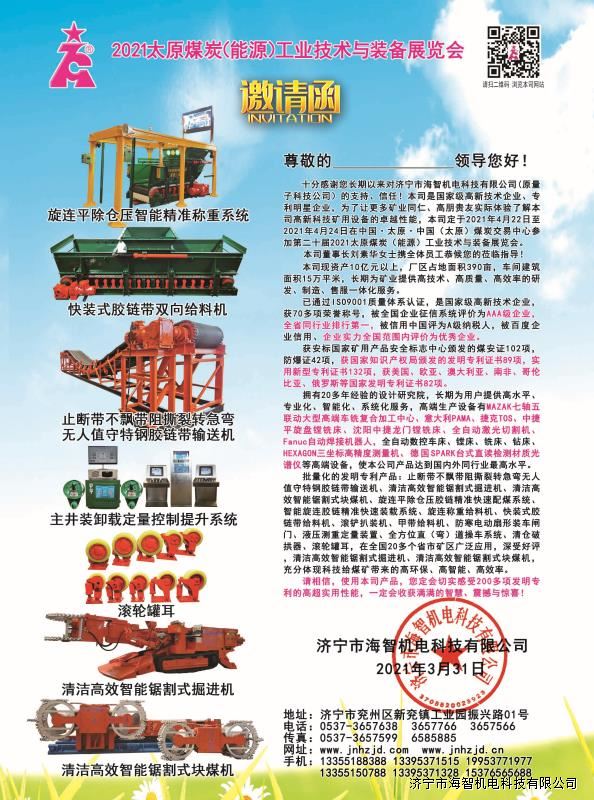 > 邀請函:第二十屆2021太原煤炭(能源)工業(yè)技術與裝備展覽會